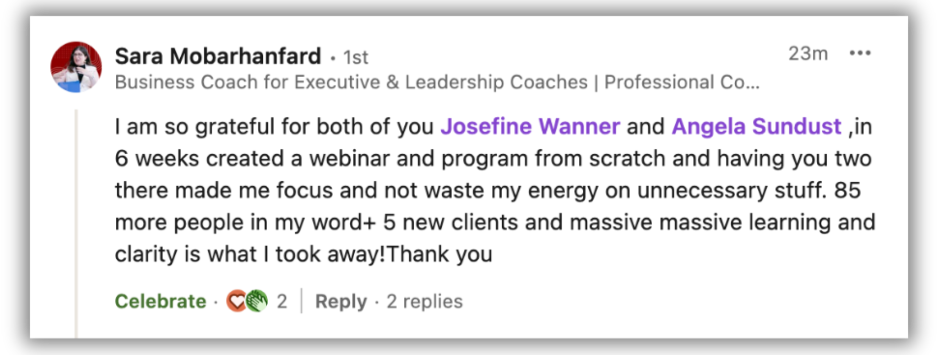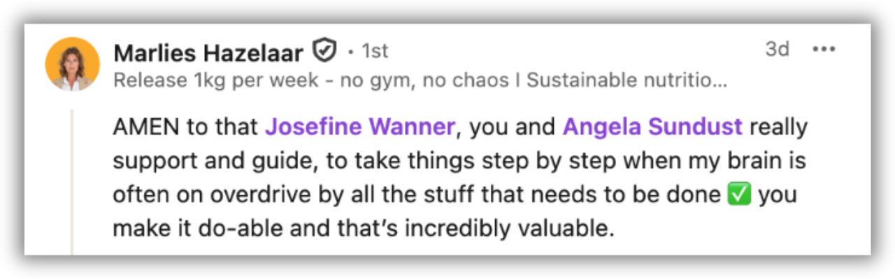 Josefine takes me out of my comfort zone toward results I could never have achieved on my own in this timeframe.